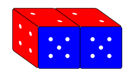 \rightfrontdice {6} {0} {{4/red, 5/blue, 2/red}} {white}